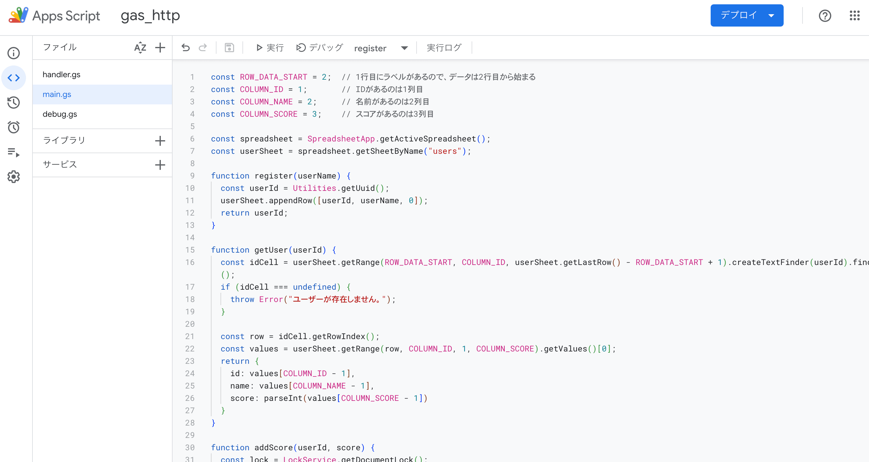 GASを開き、スクリプトを書いていく。