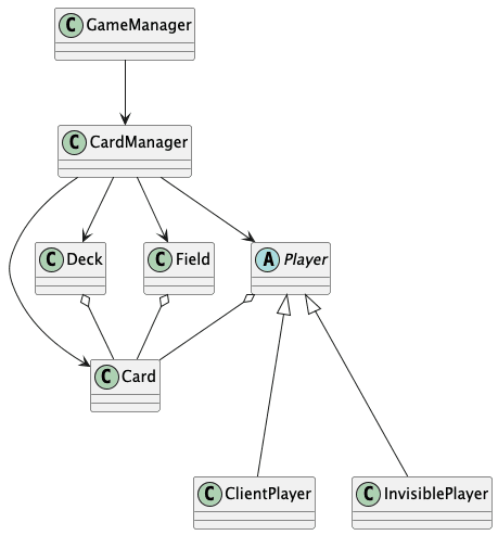 今回も、大規模運用のための構造ベースの視点で設計するなら、Deck, Field, PlayerにはICardHolderみたいなinterfaceを噛んだり、ゲームロジック全体を一個の独立したシステムにするんだよね。でも今回は、具体の視点で目の前にある「もの」をそのまま落とし込んだよ。