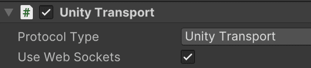 $ docker run -d --name mare-server-container --platform linux/amd64 -p 7777:7777 mare-server-image -server 0.0.0.0 -p 7777それでも通らないなって思ったら、どうやらUnityTransportってデフォルトでUDPらしい。TCPしかフォワーディングしてなかった。設定で選べるみたいなので、今回はカードゲームであることを考慮してWebSocketへ変更。